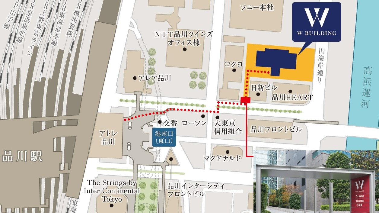 〒108-0075東京都港区港南一丁目8番15号 WビルJR線・京浜急行線 品川駅(港南口)から徒歩約5分