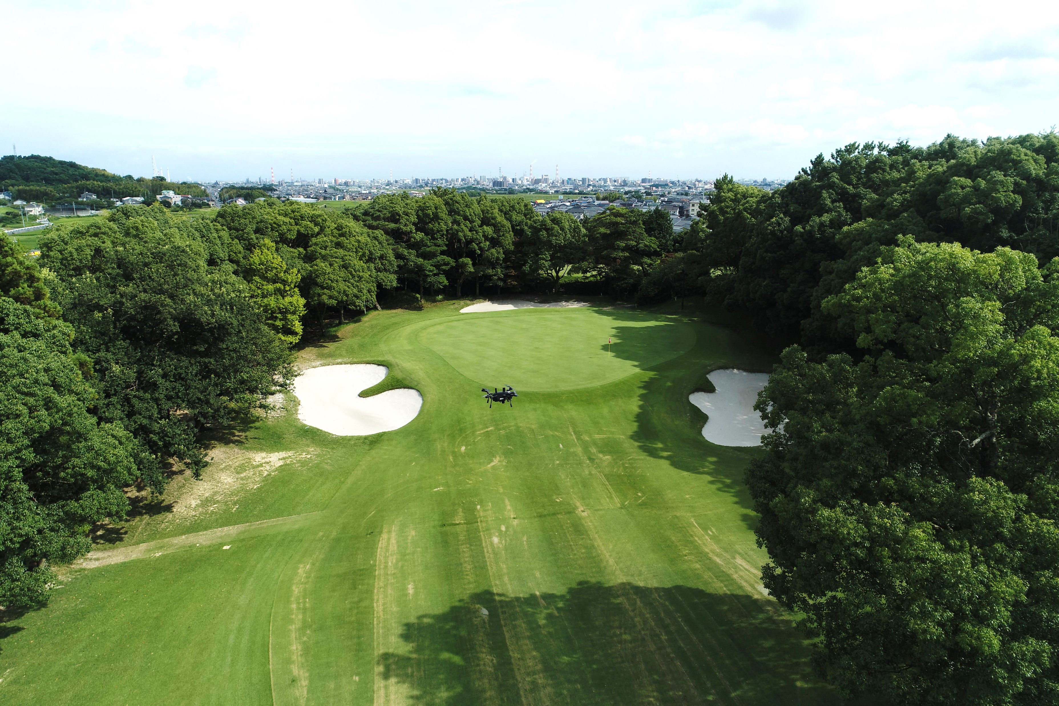 ![]() 図2 ゴルフ場上空を自動飛行するドローン |