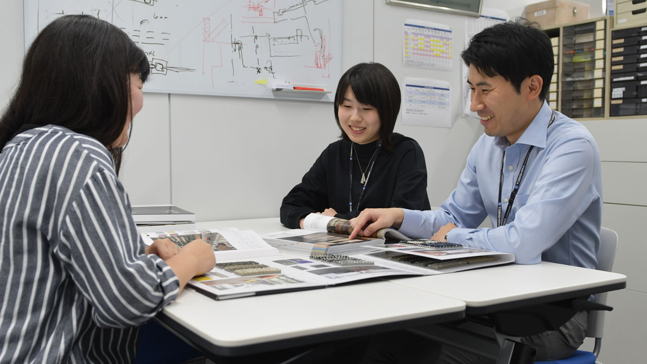 現在は意匠設計として、企画・設計から現場の工事監理まで幅広く業務に携わっています。学生の頃からずっと建築の設計をやりたいと思っていて、実際にそれを仕事として出来ていることは大きな喜びですが、仕事ですから当然良いことばかりでもありません。大変なこともあります。建設業という仕事の醍醐味は、多くの人とチームとなってひとつの建物を作りあげていくことに尽きると思います。お客様、現場やメーカー、役所など、多くの方々とやり取りをしながら少しずつ計画を前進させていき、最後に建物が完成した時の感動は何物にも代えがたいものです。自分が描いた図面が実際に目の前に建っている、その達成感は何ともいえません。私は意匠設計という仕事を通して数多くの達成感を味わいたいと思います。