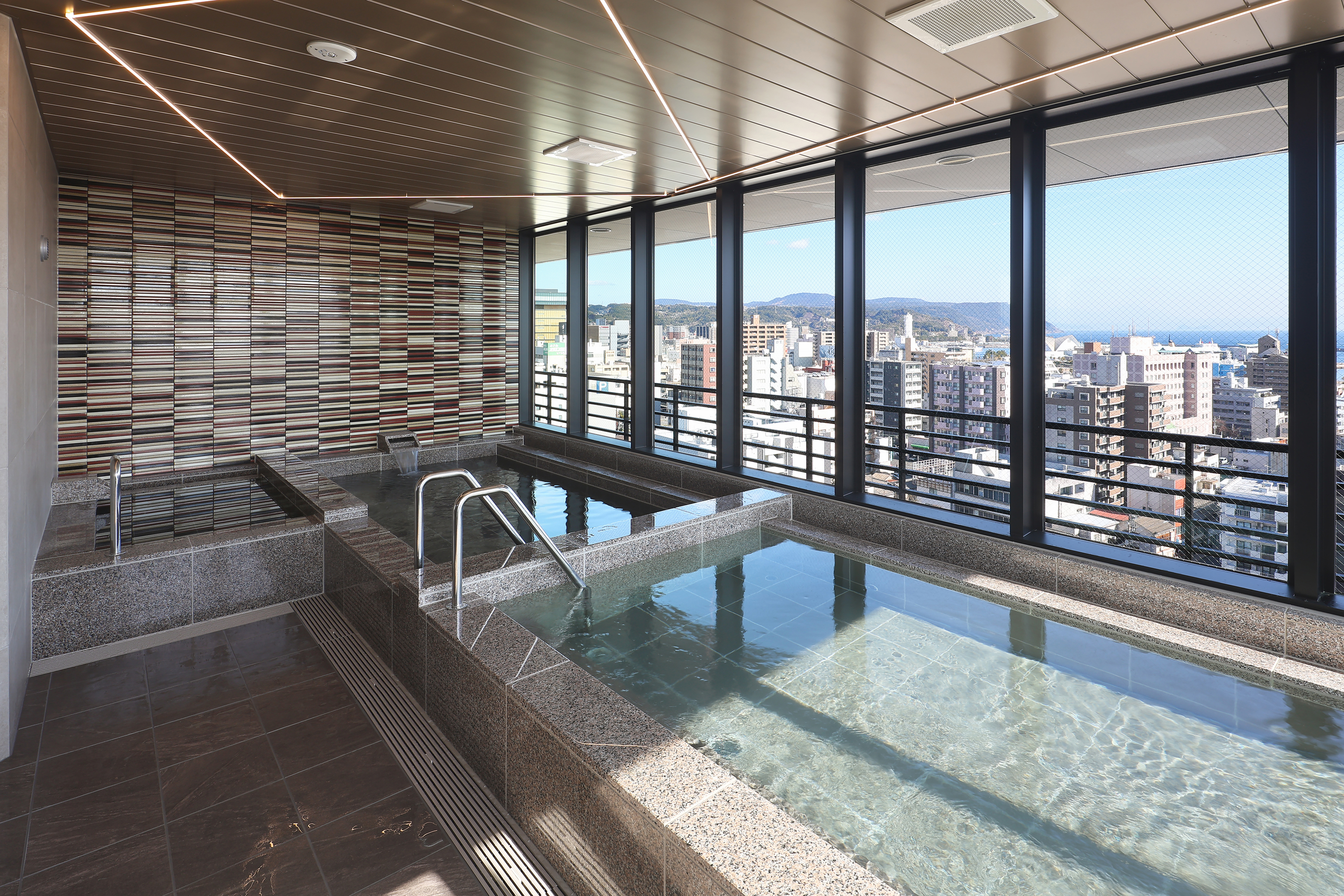 鹿児島の繁華街天文館の中心に位置し、鹿児島の象徴 『桜島』 の絶景ビューを満喫し鹿児島県内の魅力を感じられるホテルです。天文館エリアも徒歩圏内のため、アクティブな観光からビジネス滞在、 団体利用までシーンに合わせて様々なお部屋が選べるホテルとなっています。13階には人工炭酸泉温泉の展望風呂があり、絶景の桜島を一望しながらゆったりできる大浴場があり、最上階には桜島を間近に望むレストランがあり、鹿児島の郷土料理を中心に、地元食材を活かした朝食をビュッフェ形式で楽しめるホテルとなっています。