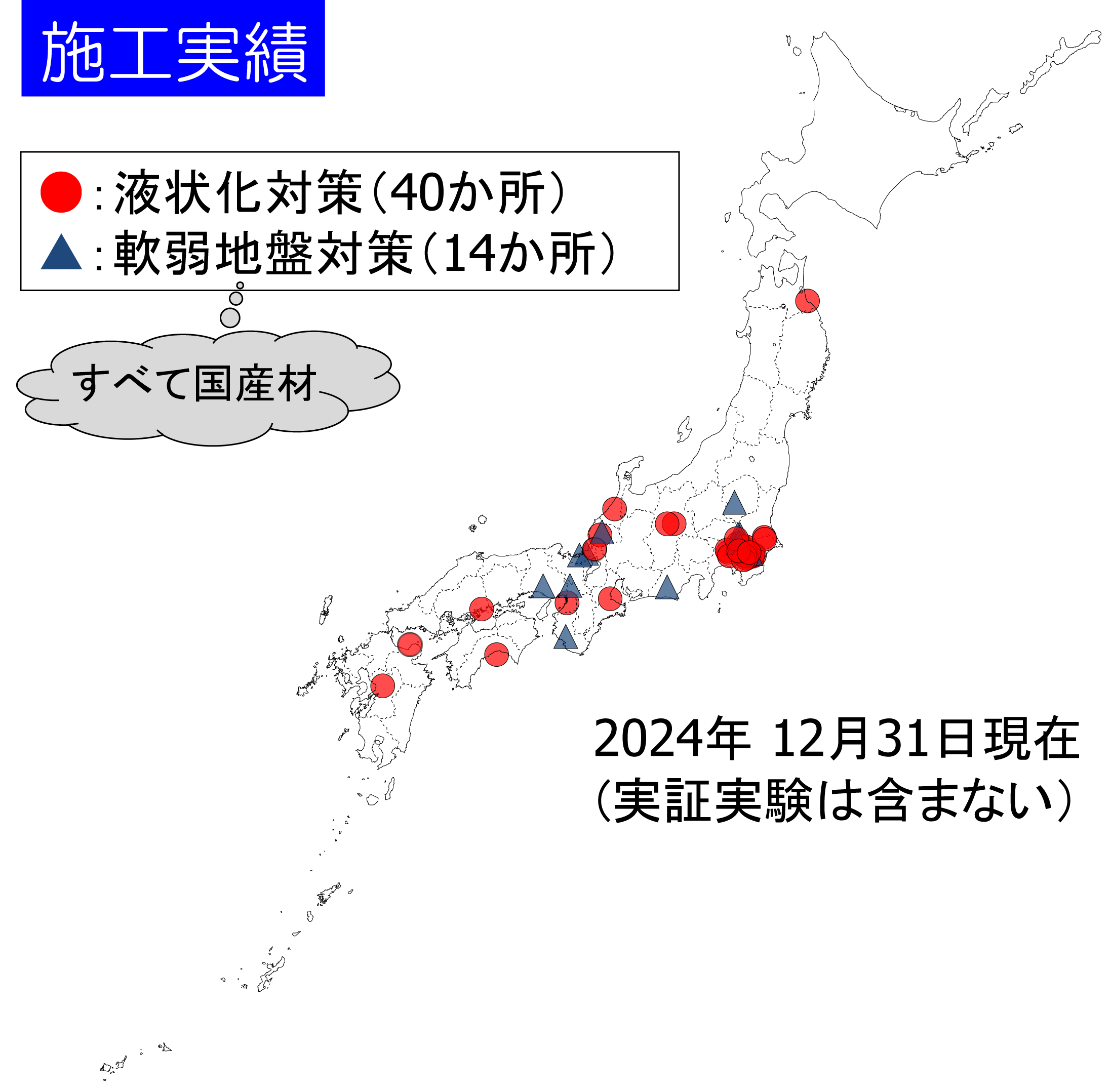 カーボンストック技術は、当社の開発したLP-SoC工法やLP-LiC工法などの木材を大量かつ長期間使用する地盤改良技術により、軟弱地盤対策や液状化対策といった建設事業を行いながら、同時に、 木材を利用による材料代替省エネルギー効果や炭素貯蔵効果により温室効果ガスを削減し、気候変動緩和・森林林業再生・安全安心社会の構築を行います。