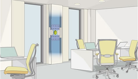 レンズダンパーはコンパクトな形状の為、一般的な耐震ブレースのように、窓などの開口部をさえぎることがありません。